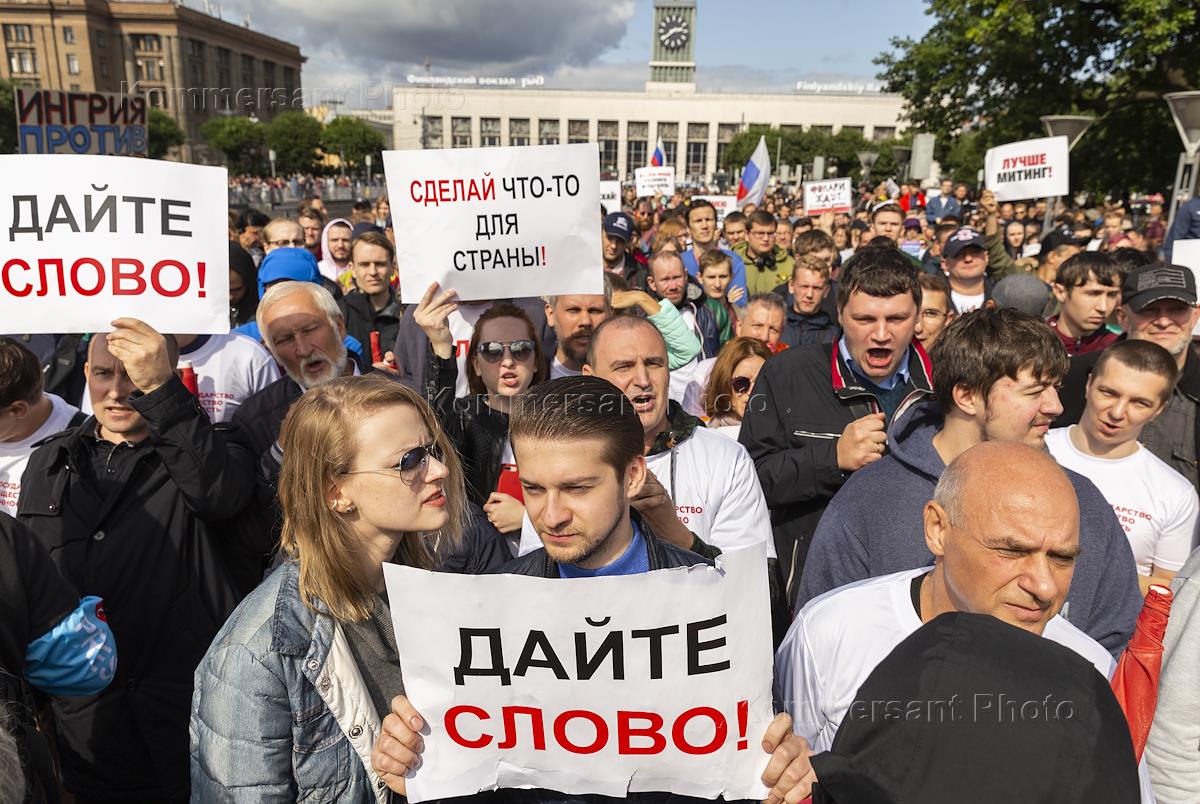 Акция в поддержку независимых кандидатов на выборы в Московскую городскую думу на площади Ленина. Участники акции.
