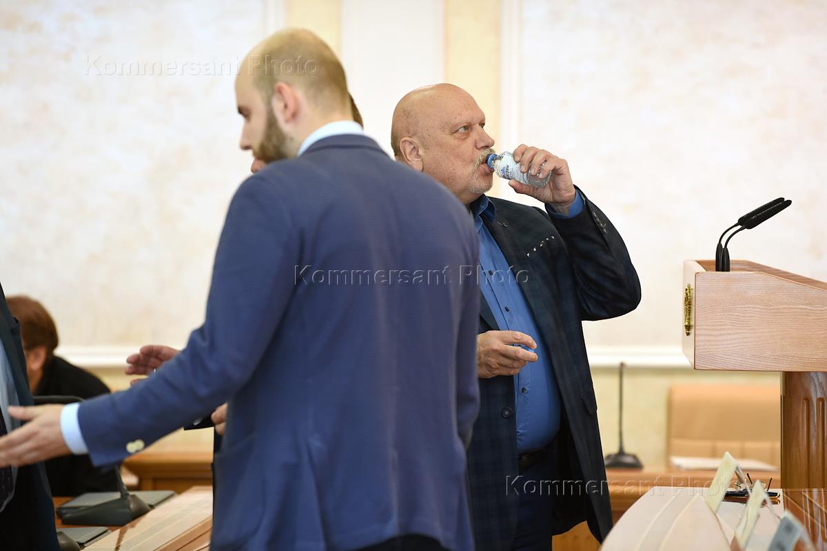 An expanded meeting of the Working group of the Interim Commission for the Protection of State Sovereignty and the Prevention of Intervention in the Internal Affairs of Russia in the Federation Council of Russia. Member of the Board of the committee of the MOO "National Committee of Public Control" Alexander Mikhailov before the meeting.