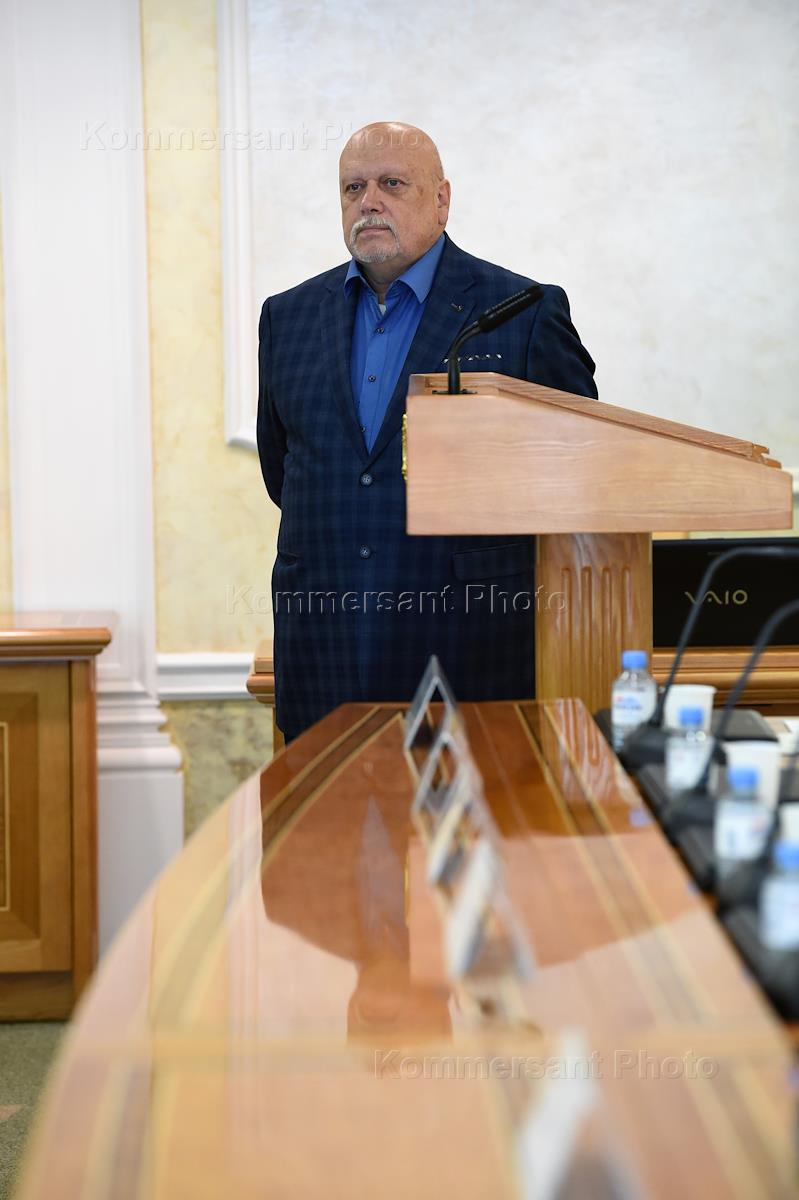 Расширенное заседание рабочей группы Временной комиссии по защите государственного суверенитета и предотвращению вмешательства во внутренние дела России в Совете Федерации (СФ) России. Член Правления комитета МОО "Национальный комитет общественного контроля" Александр Михайлов перед началом заседания.