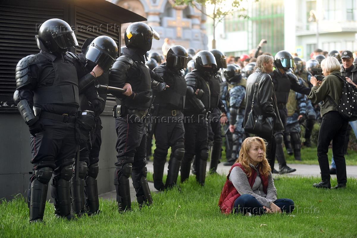 Несанкционированная акция в поддержку независимых кандидатов на выборы в Московскую городскую думу в центре Москвы "Прогулка в поддержку честных выборов". Сотрудники правоохранительных органов во время акции.
