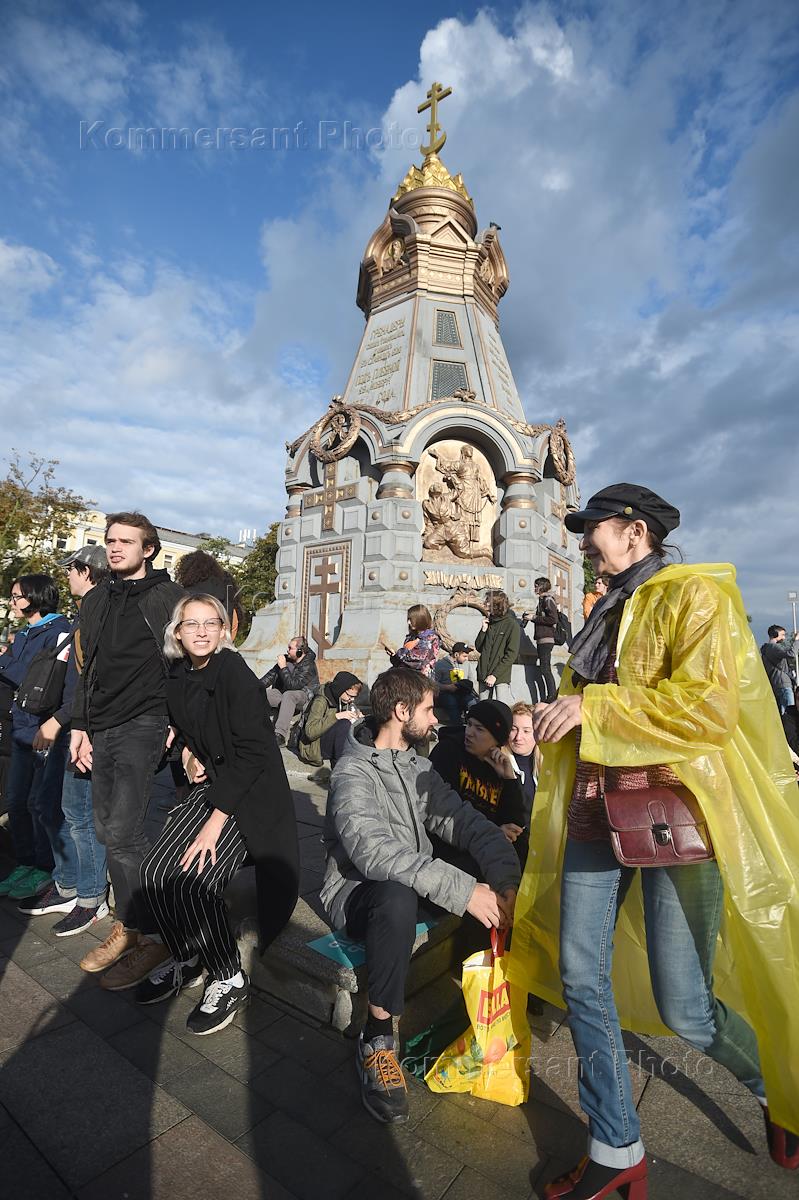 Несанкционированная акция в поддержку независимых кандидатов на выборы в Московскую городскую думу в центре Москвы "Прогулка в поддержку честных выборов". Участники акции.