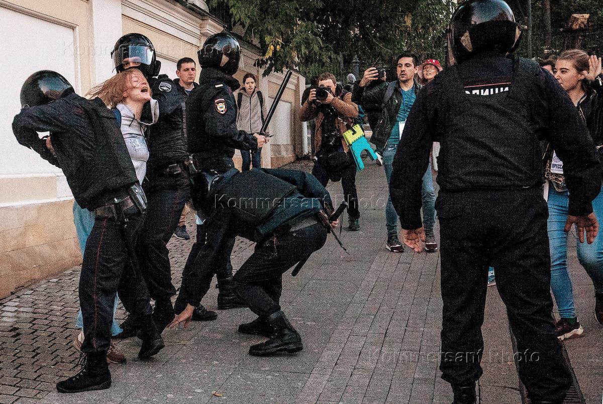 Задержание активистки Дарьи Сосновской во время несанкционированной акции в поддержку незарегистрированных кандидатов на выборы в Московскую городскую думу.