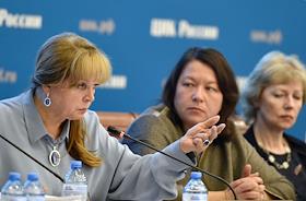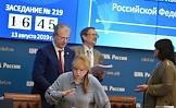 Meeting of the Central Election Commission (CEC) of Russia. Deputy Chairman of the CEC of Russia Nikolai Bulaev (center) and member of the CEC of Russia Boris Ebzeev (left) during a meeting.
