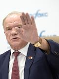 Пресс-конференция кандидатов в депутаты Московской городской думы от КПРФ в информационном агентстве "Интерфакс". Лидер КПРФ, член комитета Государственной думы России по делам Содружества Независимых Государств, евразийской интеграции и связям с соотечественниками Геннадий Зюганов во время пресс-конференции.