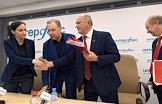 Пресс-конференция кандидатов в депутаты Московской городской думы от КПРФ в информационном агентстве "Интерфакс". Заместитель председателя ЦК КПРФ, первый секретарь Московского городского комитета КПРФ Валерий Рашкин (справа) и член Московской городской избирательной комиссии Людмила Синельщикова во время пресс-конференции.
