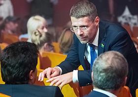Общегородской конкурс красоты "Мисс Екатеринбург". Финальное шоу в центре культуры "Урал". Глава Екатеринбурга Александр Высокинский во время церемонии объявления победительниц конкурса.