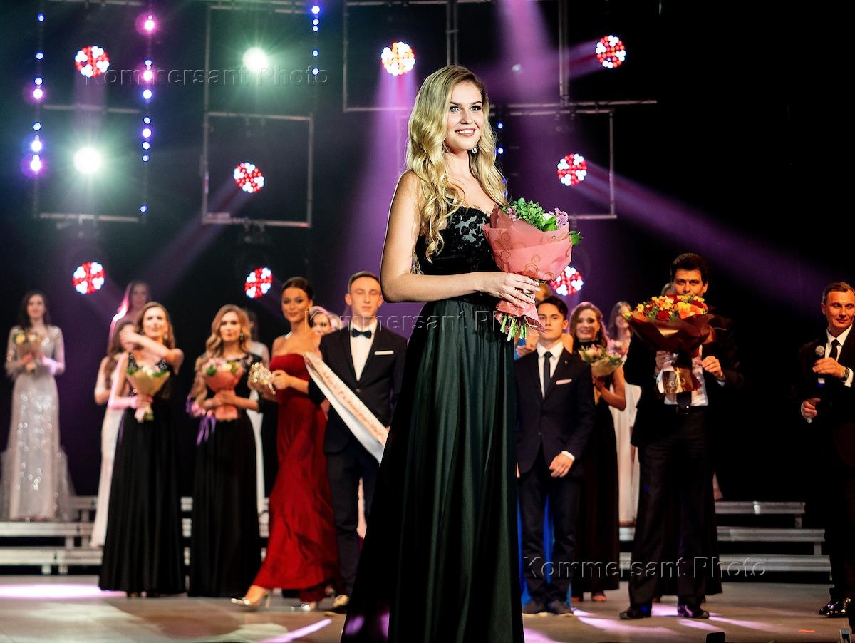 Общегородской конкурс красоты "Мисс Екатеринбург 2019". Финальное шоу в центре культуры "Урал". "Мисс Екатеринбург 2019" Виктория Вершинина во время церемонии объявления победительниц конкурса.