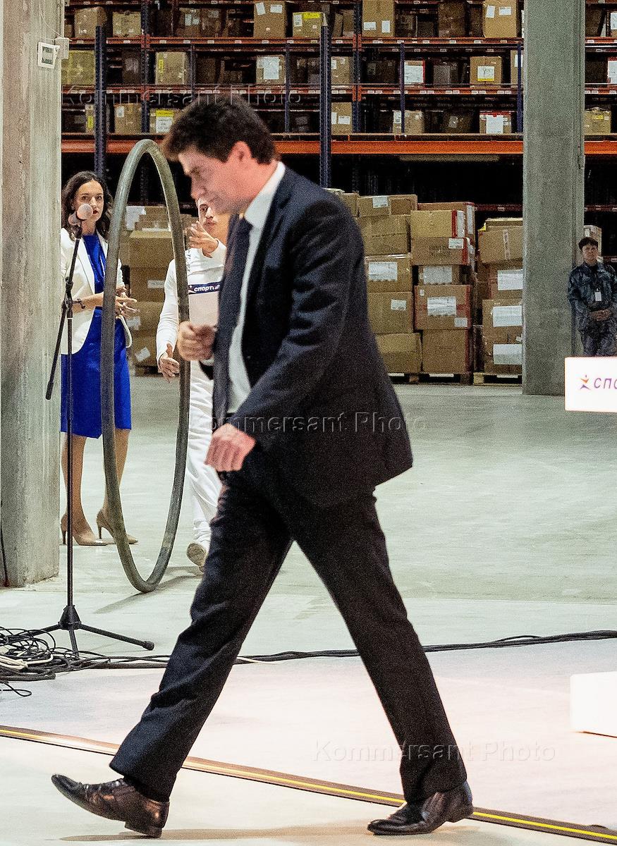 Глава Екатеринбурга Александр Высокинский во время церемонии открытия распределительного центра компании "Спортмастер".