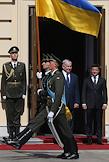 Президент Украины Владимир Зеленский (справа) и премьер-министр Израиля Биньямин Нетаньяху (в центре) во время официальной церемонии встречи перед началом переговоров.