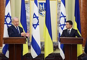Премьер-министр Израиля Биньямин Нетаньяху (слева) и президент Украины Владимир Зеленский (справа) во время совместной пресс-конференции.