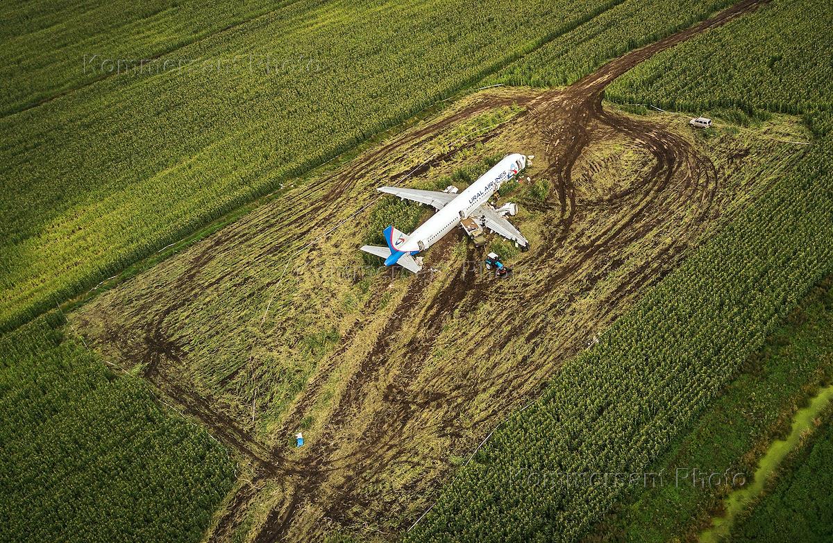 Место аварийной посадки самолета Airbus A321 авиакомпании "Уральские авиалинии", следовавшего рейсом "Москва — Симферополь" из аэропорта "Жуковский".