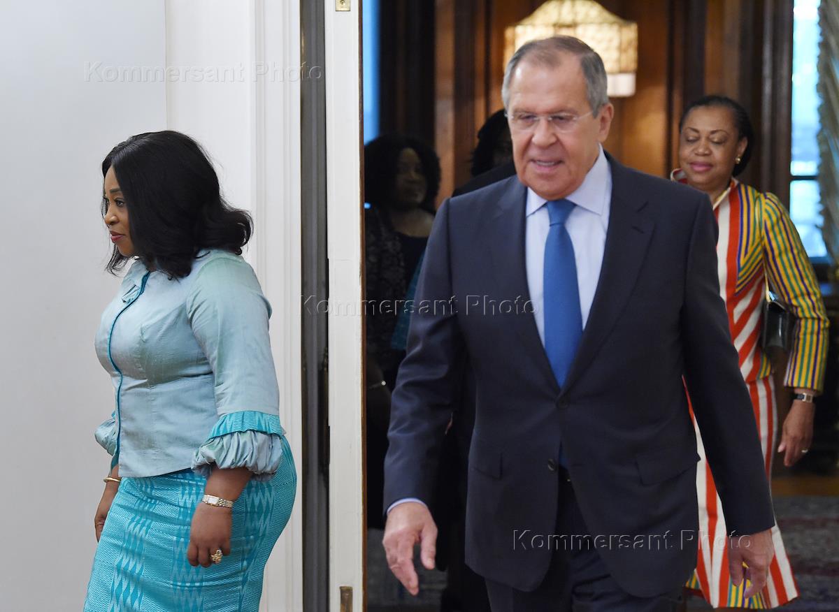 Переговоры министра иностранных дел России Сергея Лаврова с министром иностранных дел Ганы Ширли Ботчвей в Доме приемов МИД. Министр иностранных дел Ганы Ширли Ботчвей (слева) и министр иностранных дел России Сергей Лавров (справа) во время переговоров.