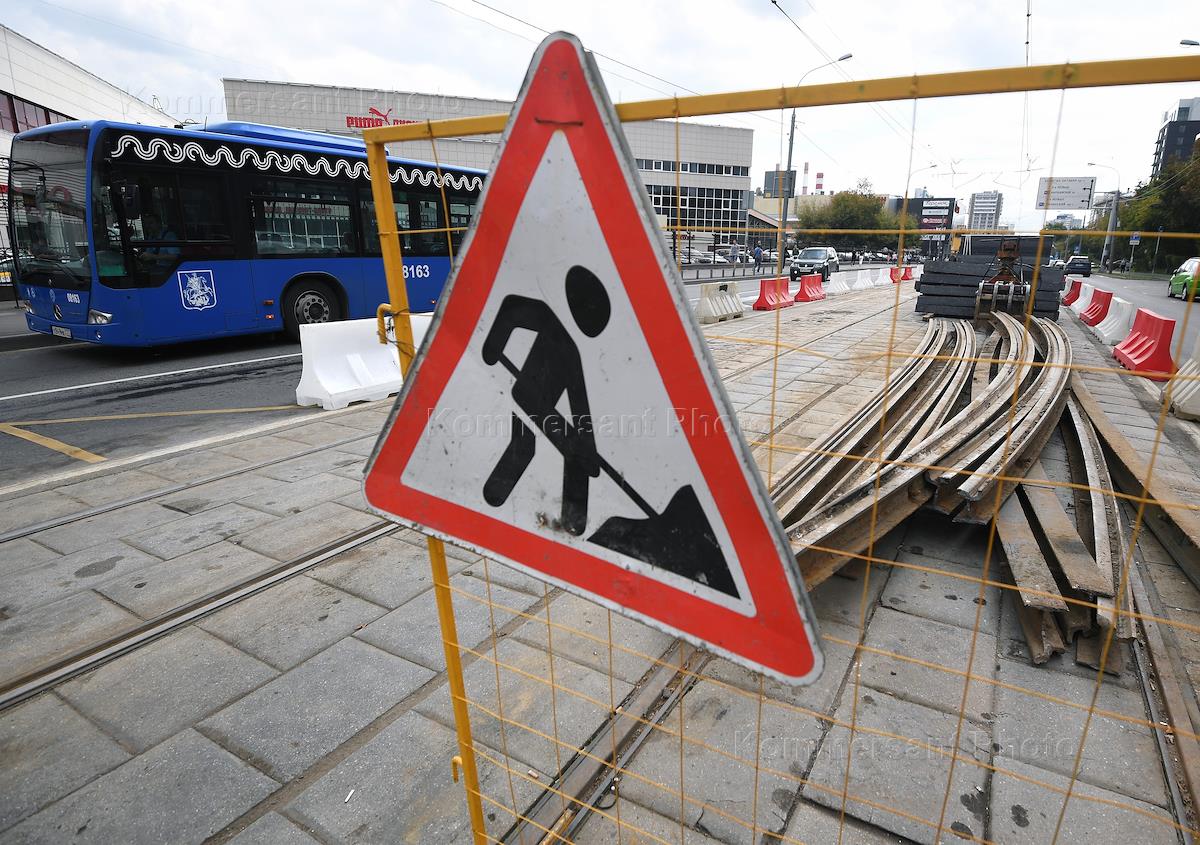 Ремонт трамвайных путей на улице Вавилова.