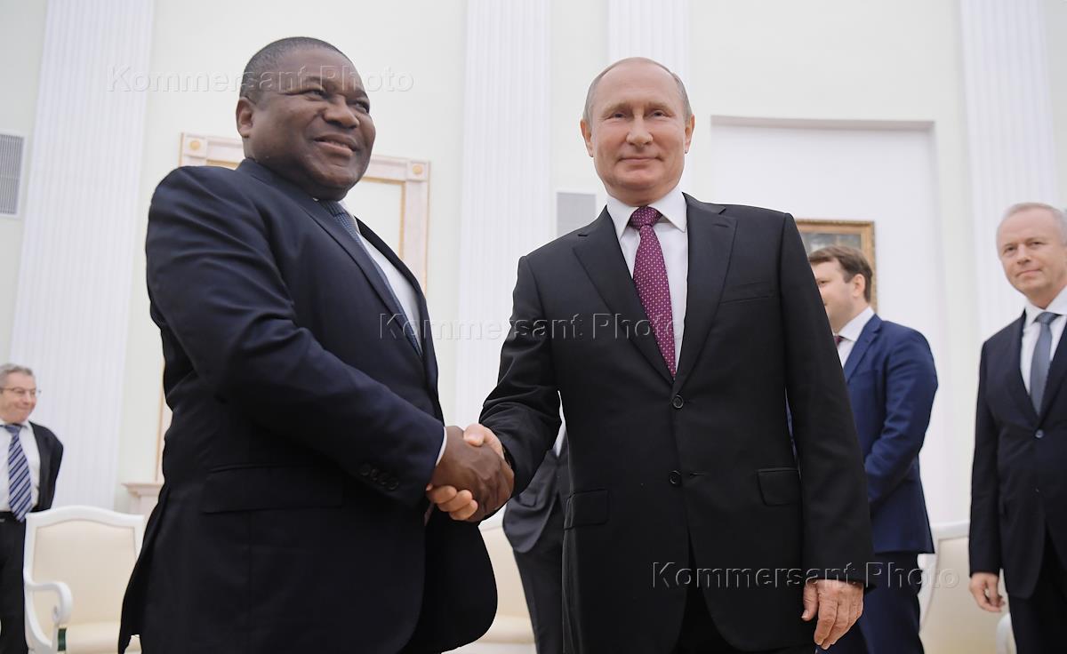 Переговоры президента России Владимира Путина с президентом Мозамбика Филипе Ньюси в Кремле.