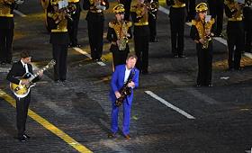 XII Международный военно-музыкальный фестиваль "Спасская башня" на Красной площади. Джазмен Игорь Бутман во время церемонии открытия.