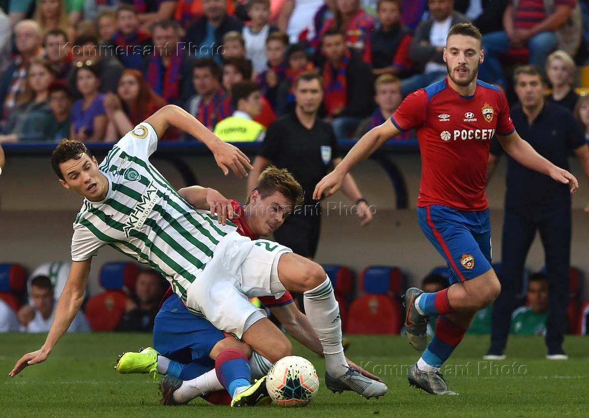 Российская Премьер-лига (РПЛ). Чемпионат России по футболу 2018/2019. 7-й тур. Матч между командами "ЦСКА" (Москва) и "Ахмат" (Грозный) на стадионе ВЭБ Арена. Игроки во время матча.