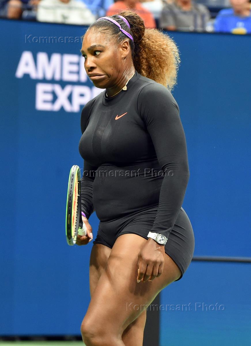 Открытый чемпионат США (US Open) по теннису. Американская теннисистка Серена Уильямс во время матча с российской теннисисткой Марией Шараповой.