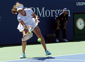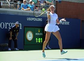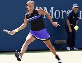 Открытый чемпионат США (US Open) по теннису. Российская теннисистка Дарья Касаткина во время матча с теннисисткой из Великобритании Йоханной Конта.