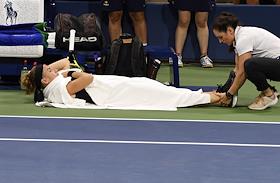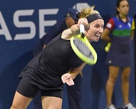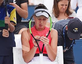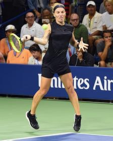Открытый чемпионат США (US Open) по теннису. Российская теннисистка Анна Калинская во время матча с американской теннисисткой Слоаной Стивенс.