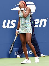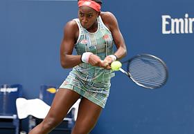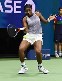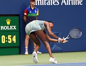 Открытый чемпионат США (US Open) по теннису. Американская теннисистка Кори Гауфф во время матча. с российской теннисисткой Анастасией Потаповой.