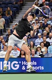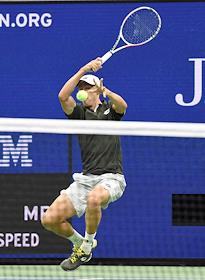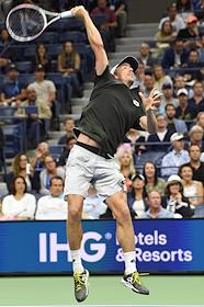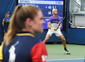 Открытый чемпионат США (US Open) по теннису. Австралийский теннисист Джон Миллман во время матча с испанским теннисистом Рафаэлем Надалем.