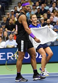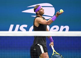 Открытый чемпионат США (US Open) по теннису. Испанский теннисист Рафаэль Надаль во время матча с австралийским теннисистом Джоном Миллманом.