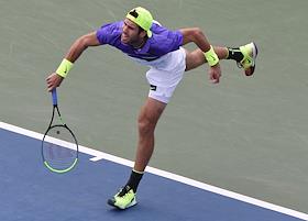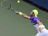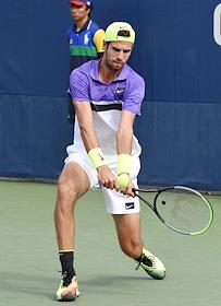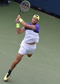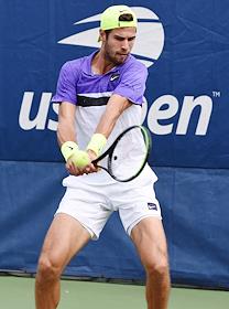 Открытый чемпионат США (US Open) по теннису. Российский теннисист Карен Хачанов во время матча с канадским теннисистом Вашеком Поспишилом.