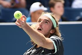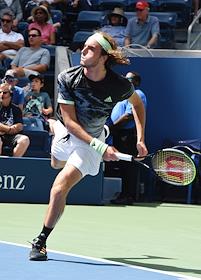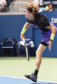 Открытый чемпионат США (US Open) по теннису. Греческий теннисист Стефанос Циципас во время матча с российским теннисистом Андреем Рублевым.