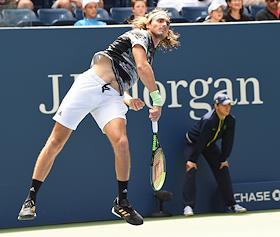 Открытый чемпионат США (US Open) по теннису. Немецкий теннисист Александр Зверев во время матча с молдавским теннисистом Раду Алботом.