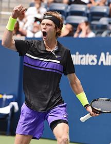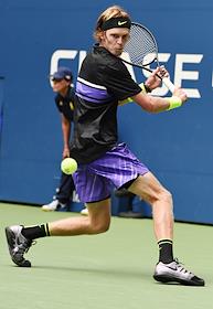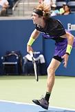 Открытый чемпионат США (US Open) по теннису. Российский теннисист Андрей Рублев во время матча с греческим теннисистом Стефаносом Циципасом.