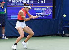 Открытый чемпионат США (US Open) по теннису. Российская теннисистка Вероника Кудерметова во время матча c американской теннисисткой Франческой ди Лоренцо.