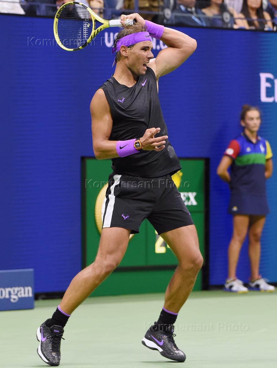 Открытый чемпионат США (US Open) по теннису. Испанский теннисист Рафаэль Надаль во время матча с австралийским теннисистом Джоном Миллманом.