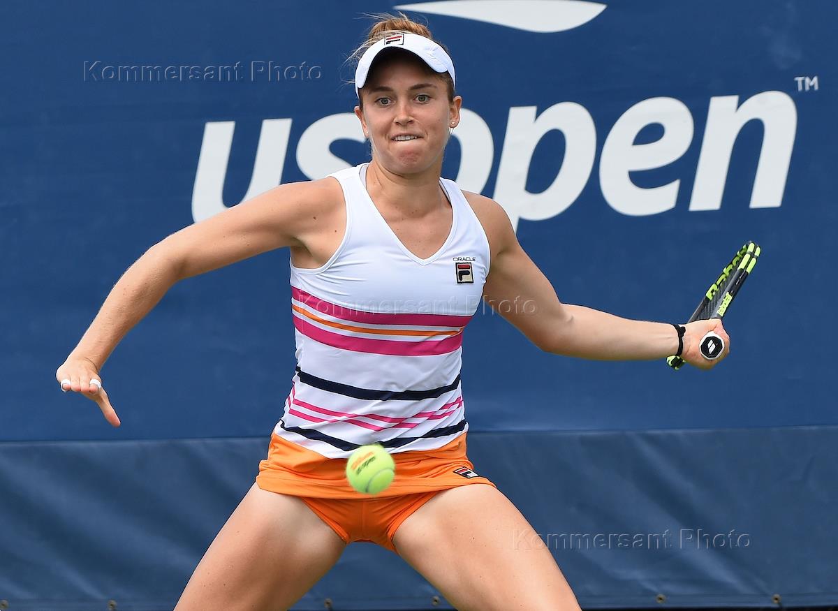 Открытый чемпионат США (US Open) по теннису. Российская теннисистка Анна Калинская во время матча с американской теннисисткой Слоаной Стивенс.
