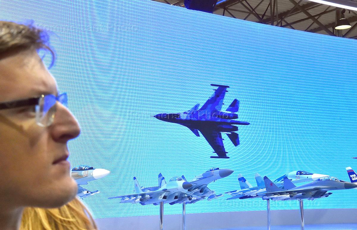 Международный авиационно-космический салон МАКС-2019 прошел на аэродроме в Жуковском. День второй. Стенд компании "Сухой".