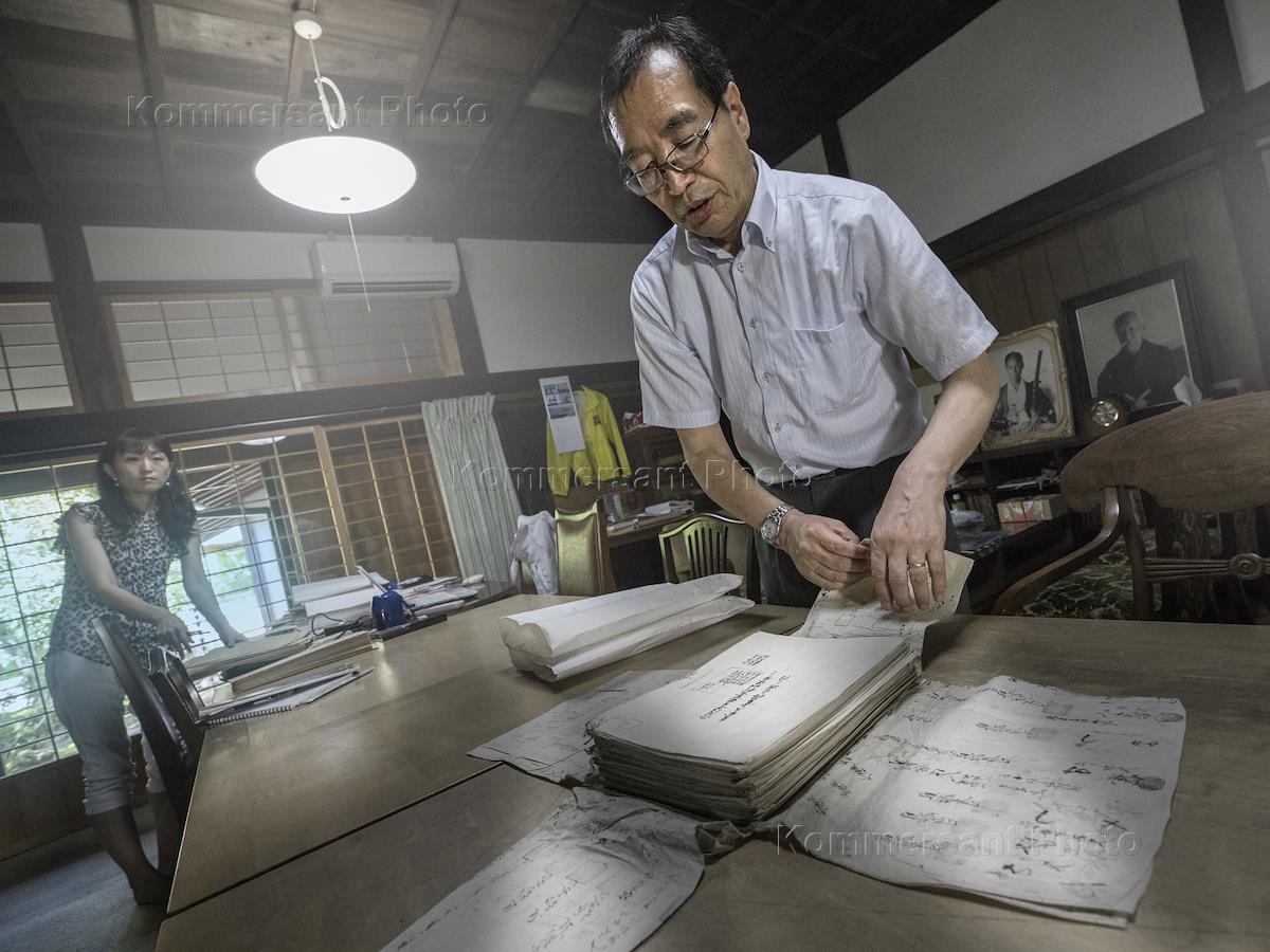 По следам адмирала Путятина. Директор дома-музея губернатора провинции Нираяма, известного сторонника контактов с Россией, Эгава Хидэтацу демонстрирует уникальные документы ХIX века из истории русско-японских переговоров.