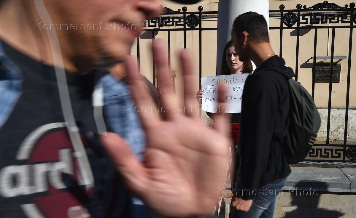 Одиночный пикет у здания МГТУ имени Баумана в поддержку Даниила Конона, обвиняемому по делу о массовых беспорядках в центре Москвы 27 июля 2019 года.