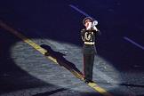 XII Международный военно-музыкальный фестиваль "Спасская башня" на Красной площади. Церемония закрытия. Французская певица Мирей Матье (в центре) во время церемонии.