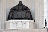 Рабочая поездка президента России Владимира Путина в Монголию. Торжественная церемония встречи президента России Владимира Путина с президентом Монголии Халтмагийном Баттулгой в Государственном дворце на площади имени Дамдина Сухэ-Батора. Памятник Дамдину Сухэ-Батору.