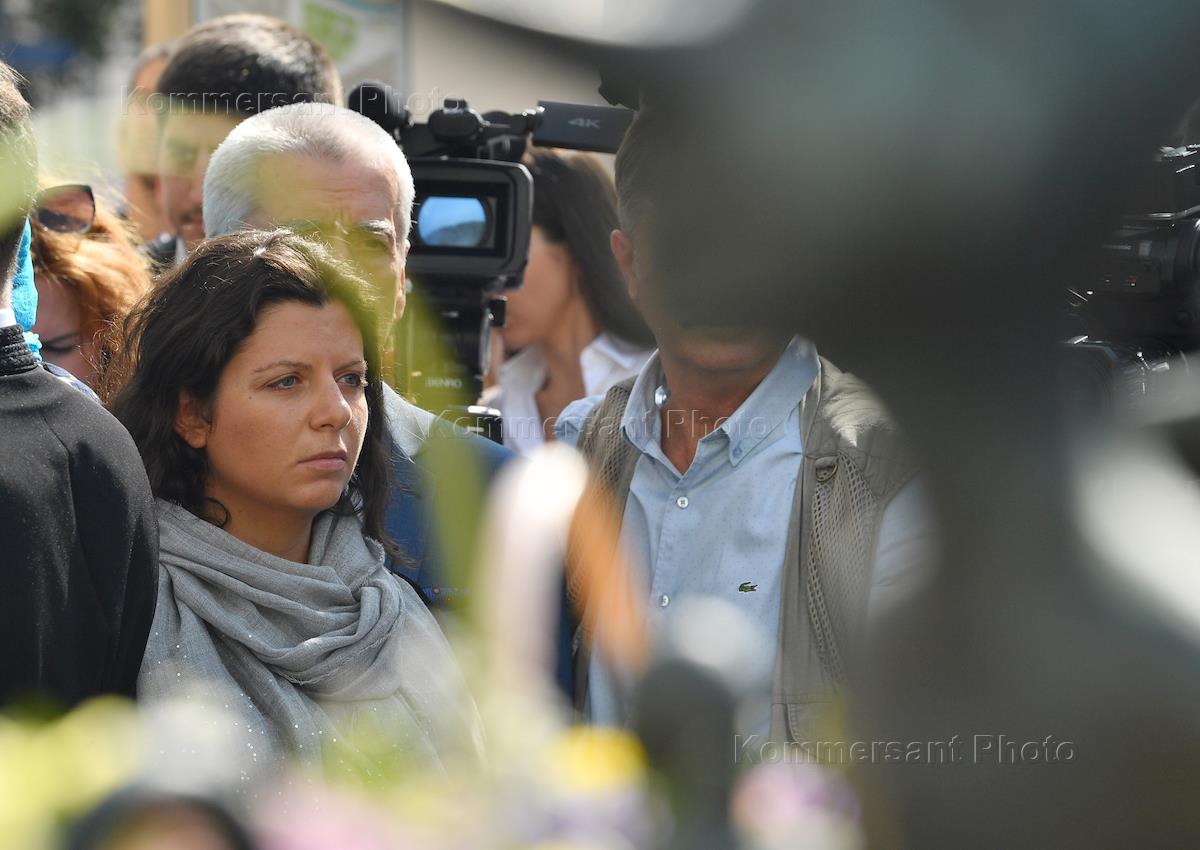 Акция памяти жертв трагедии в Беслане 3 сентября 2004 года, в храме Рождества Пресвятой Богородицы на Кулишках (Аланское подворье). Президент Российской академии художеств, автор памятника жертвам Беслана "Рвущиеся ввысь детские души" Зураб Церетели (справа) во время акции.