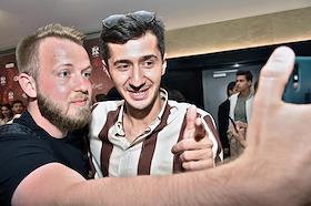 Премьера фильма "Жара" режиссера Дины Штурмановой в кинотеатре "Каро 11 Октябрь". Актер Магомед Муртазаалиев (справа) на премьере.