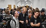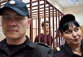 Студент четвертого курса факультета "Социальных наук" Высшей школы экономики и видеоблогер Егор Жуков (слева), обвиняемый по делу о массовых беспорядках на акции 27 июля, и его адвокат Илья Новиков (второй справа) во время заседания Басманного районного суда.