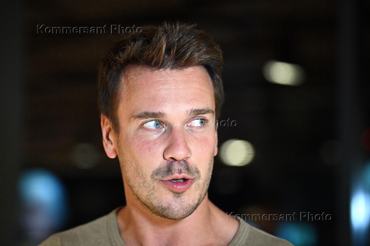 Премьера фильма "Сорокин Трип" в Центре документального кино. Актер Максим Виторган (слева) и журналист Антон Желнов (справа) на премьере.