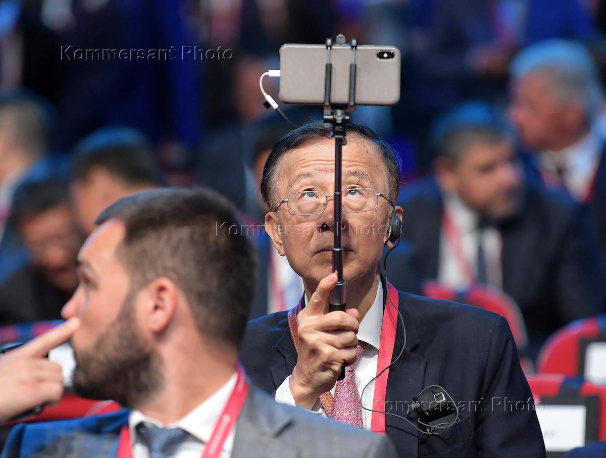Рабочая поездка президента России Владимира Путина во Владивосток. V Восточный экономический форум (ВЭФ) на территории кампуса Дальневосточного федерального университета (ДВФУ) на острове Русский. Участники форума перед началом пленарного заседания ВЭФ-2019.