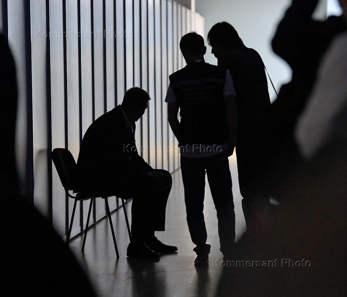 Рабочая поездка президента России Владимира Путина во Владивосток. V Восточный экономический форум (ВЭФ). Жанровая фотография. Силуэты участников форума в холле перед началом пленарного заседания.