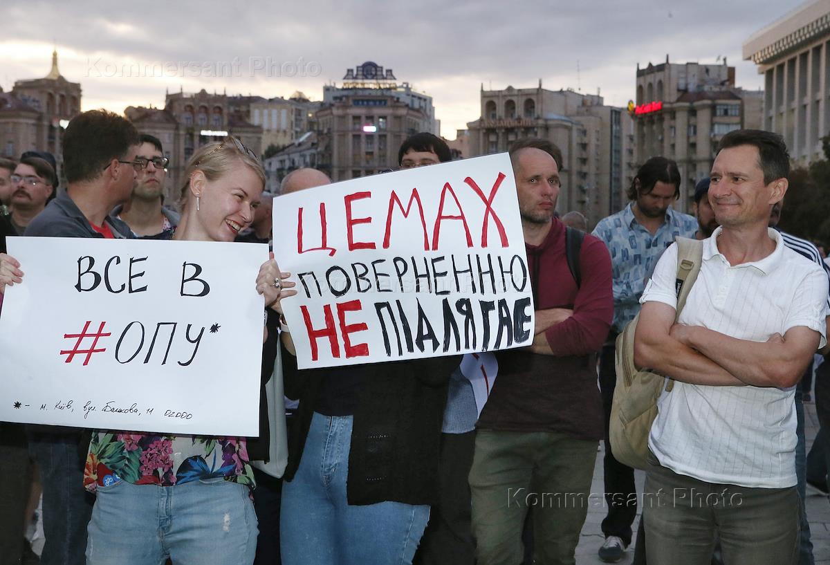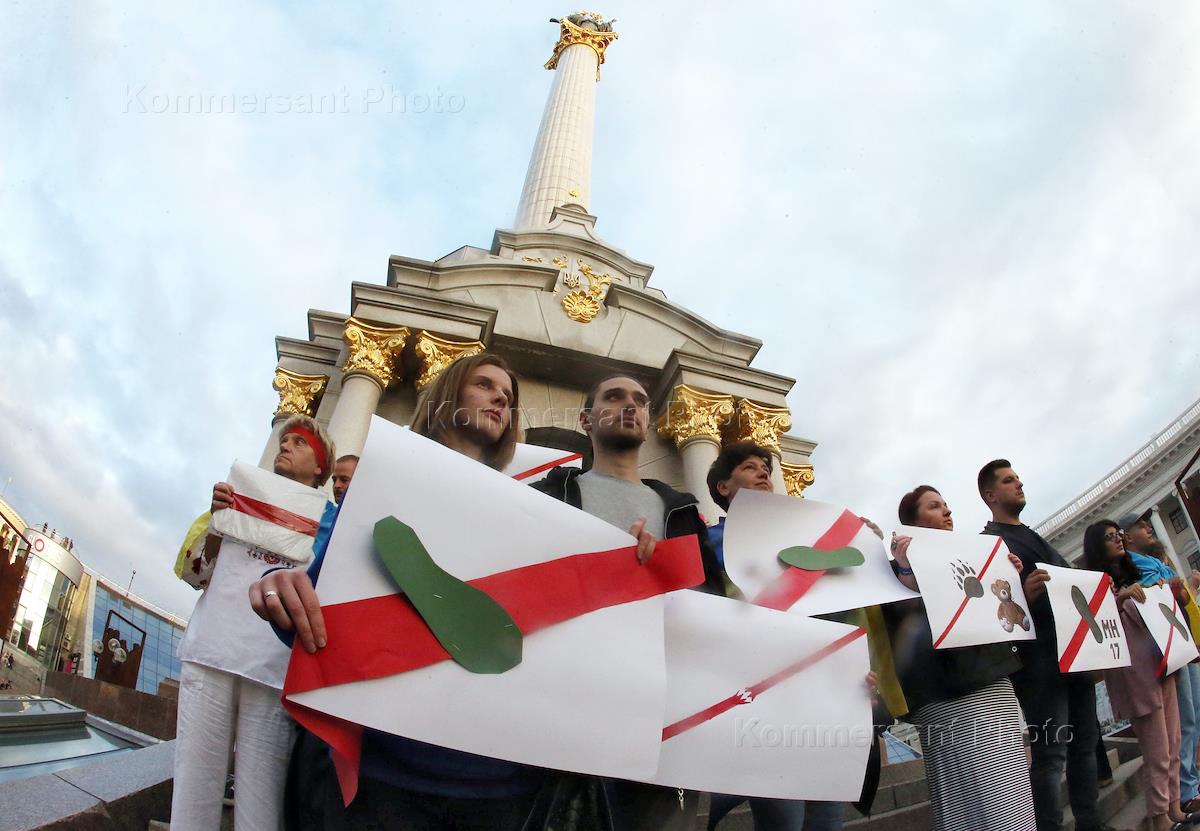 Участники акции-предупреждения "Красная линия" для новой власти Украины в связи с освобождением из-под стражи бывшего начальника противовоздушной обороны Славянской бригады ДНР Владимира Цемаха, которого на Украине считают "самым ценным свидетелем" по делу о катастрофе боинга рейса МН17, прошла на Майдане Независимости.