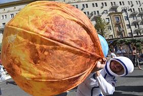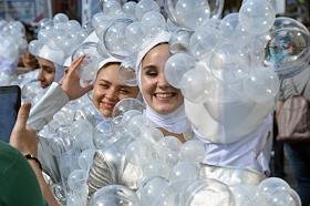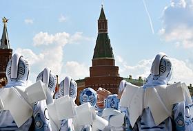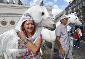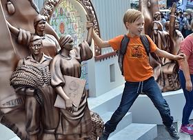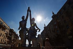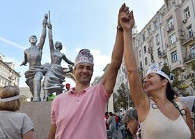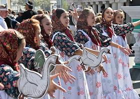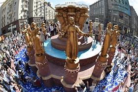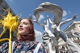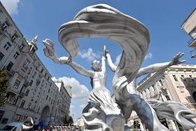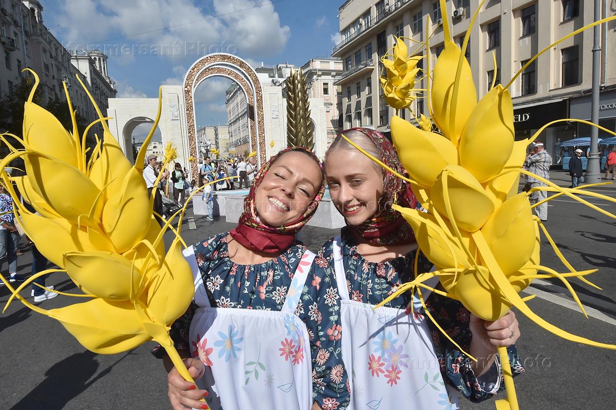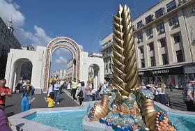 Празднование 872-годовщины основания города Москвы. День города на Тверской улице. Инсталляция к 80-летию ВДНХ "Фонтан Дружба народов".