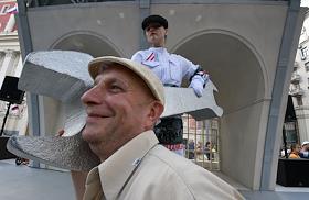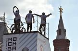 Празднование 872-годовщины основания города Москвы. День города на Тверской улице. Выступления канатоходцев.