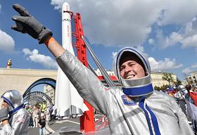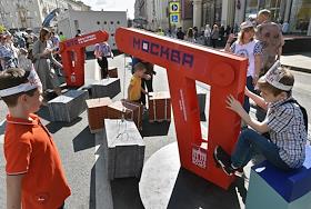 Празднование 872-годовщины основания города Москвы. День города на Тверской улице. Инсталляция к 80-летию ВДНХ.