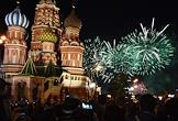 Празднование 872-годовщины основания города Москвы. Праздничный салют на Красной площади.