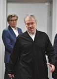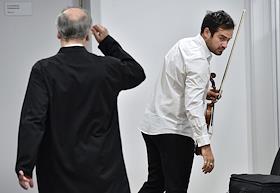 Празднование 872-годовщины основания города Москвы. Художественный руководитель Мариинского театра, дирижер Валерий Гергиев (справа) перед началом концерта оркестра Мариинского театр, посвященного открытию сезона зала "Зарядье".